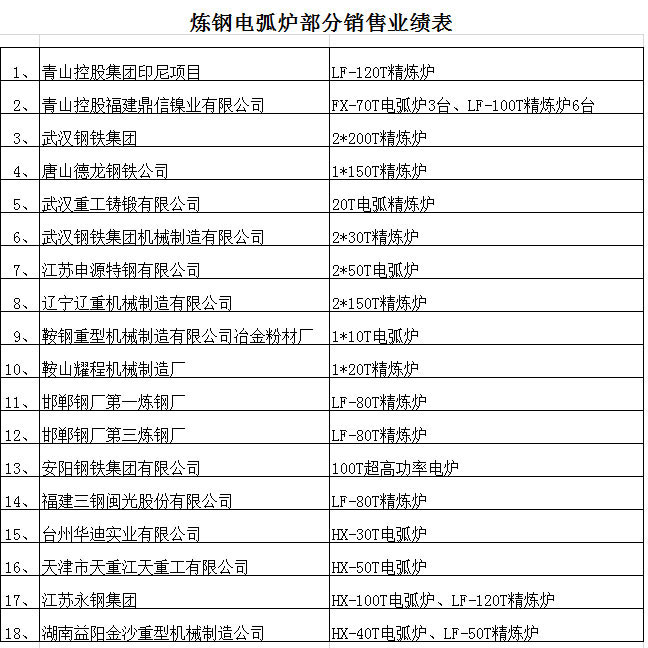 煉鋼爐設備業績
